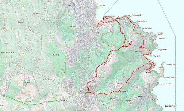 Serien uns 11,80 quilòmetres. La ruta permet algunes opcions per reduir el quilometratge, com no anar fins al mirador o a cala Aiguafreda, podem agafar un sender local que va directament a Begur.