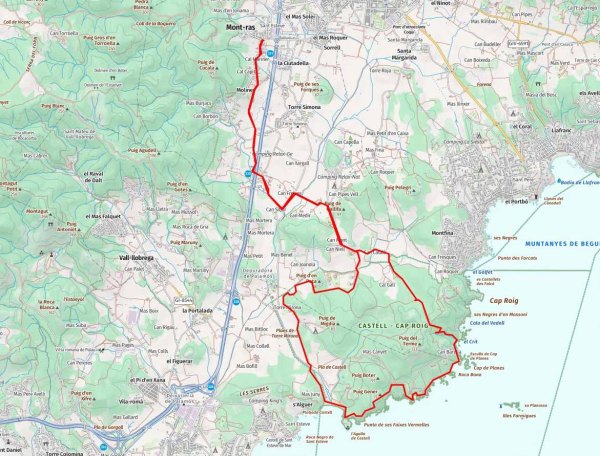 Ruta quasi circular que surt de Mont-ras, fins arribar a la platja verge de Castell, per fer el camí de ronda que ens permetrà conèixer tot un seguit de cales i platges allunyades de la massificació que afecta a llocs propers de la costa gironina, dintre de l´Espai d´Interés Natural de Castell-Cap Roig.