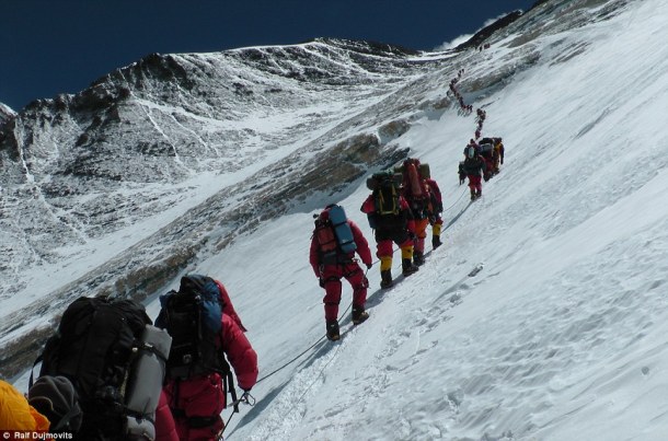Ralf Dujmovits, alpinista alemán de 50 años, es el autor de las fotos de las colas en el Everest que han dado la vuelta al mundo. Dujmovits, que ha ascendido los 14 picos de más de 8.000 metros del planeta, se había dado la vuelta en su intento de llegar a la cumbre del Everest sin oxígeno cuando se percató de la impactante imagen.