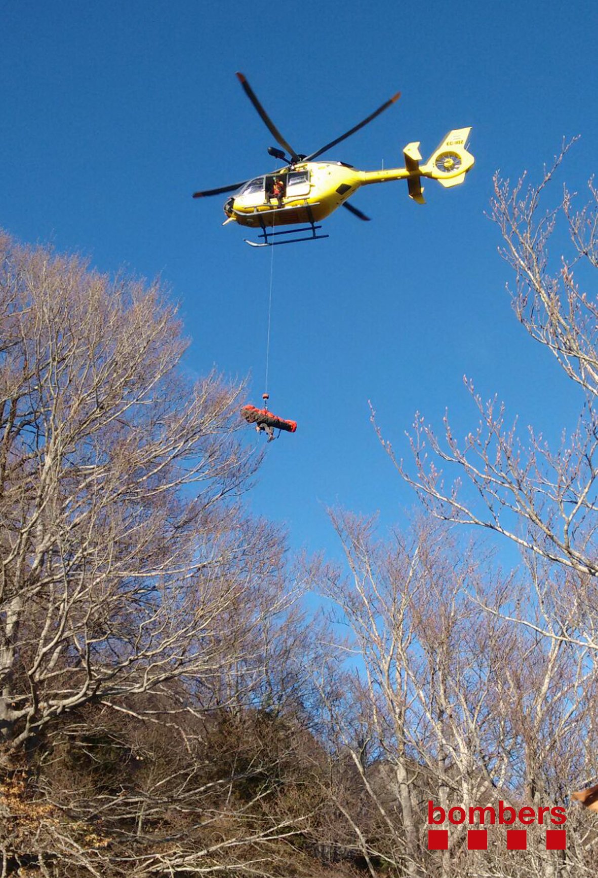El nen anava acompanyat d’una tieta i d’un adolescent. Els Bombers han rebut l’avís dels fets a dos quarts de dues de la tarda, i hi han enviat efectius del parc d’Olot i un helicòpter amb membres del GRAE. Un cop rescatat ha estat traslladat fins a una zona de la Vall d’en Bas on l’esperava un helicòpter medicalitzat del SEM. Aquest l’ha dut a l’hospital Trueta de Girona. El nen ha patit traumatismes cranioencefàlic i abdominal.