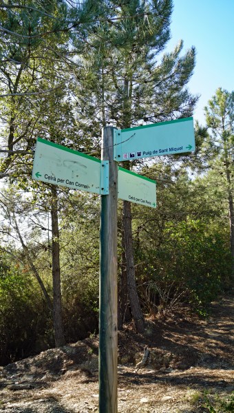 Arribem a una cruïlla, on trobem diferents senyals( 2,78 qm); anem per l´esquerra, en direcció Sant Miquel-Mina Esperança. Es una pista ampla, i estem arribant a la part superior de la muntanya.