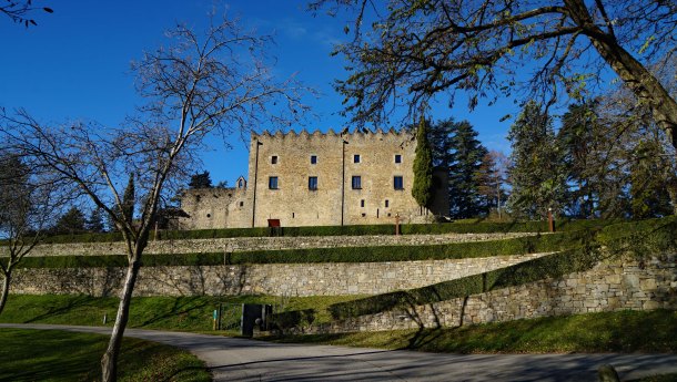 Castell de Montesquiu: “El Castell de Montesquiu té, possiblement, el seu origen en l’enclavament d’una torrassa de guàrdia que va fer edificar el comte Guifré I (el Pilós), al segle IX. No és fins a mitjan del segle XIV, però, quan l’actual castell passa, de ser un casalot destinat a la defensa, a convertir-se en una residència fortificada. Arnau Guillem de Besora és el primer del seu llinatge que habita el castell.