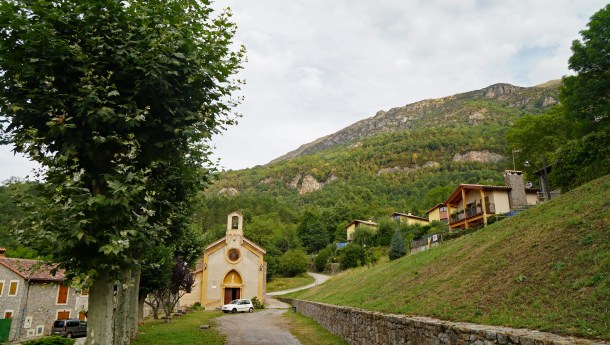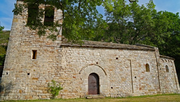 Ens acostem a l´església, on podem aprofitar per descansar una estona, sota l´ombra dels arbres. Podrem entreveure boniques vistes al fons. L´església es a sota d´una cinglera propera. Seguim per la pista amunt, i uns metres enllà, trobem una cruïlla: hem de seguir rectes, deixant a la dreta una pista en baixada.