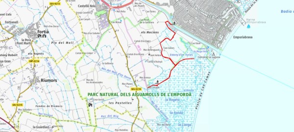 Ruta que està dintre del Parc Natural dels Aiguamolls de l´Empordà, i que correspondria a la ruta 4 del parc, que arriba fins l´estany Europa.