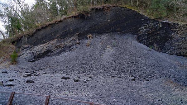 La colada superior del pla de Santa Pau, atribuïble al volcà de Rocanegra, és datada en uns 28.000 anys.”