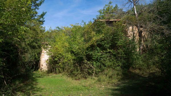 Es una finca enrunada, força engolida per la vegetació, que avui serveix per a refugi dels ramats. Just abans d´arribnar, girem a la dreta per un caminet en pujada. Haurem de travessar una portella, i seguirem per un camí ample, on veurem senyals. Anem pujant per un camí mes estret, però molt agradable pel mig de la pineda.