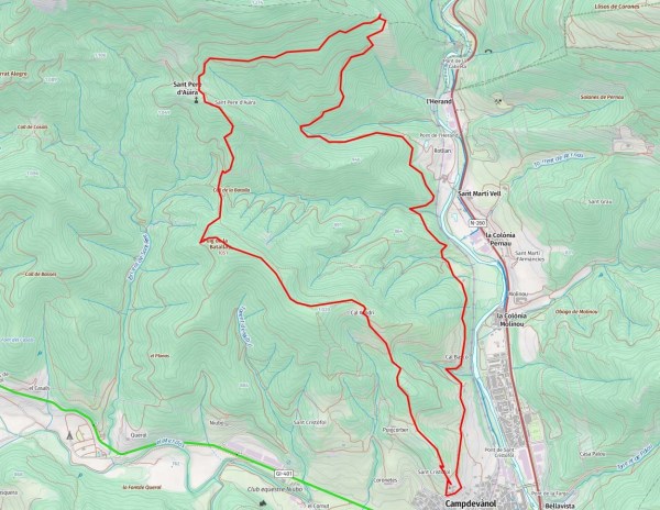 Ruta circular que surt de Campdevànol i arriba fins la petita església de Sant Pere d´Aüira, on podem gaudir d´esplèndides vistes del Pedraforca i dels cims propers, així com gaudir de la caminada per la carena del coll de la Batalla, pel mig d´una pineda de pi roig.