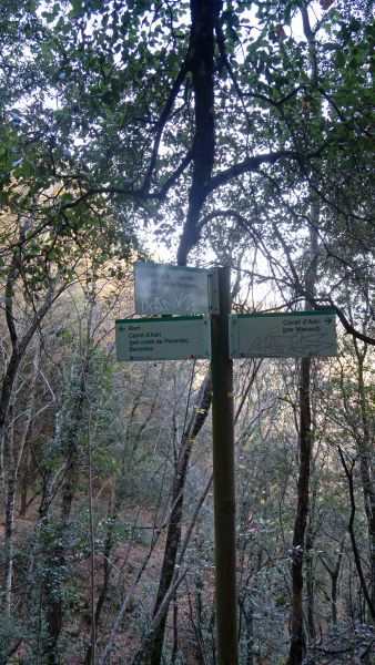 La pista va fent baixada suau, sense vistes. Trobem accés al mas La Cadalt; la pista fa un revolt a la nostra esquerra, i seguim baixant per pista.